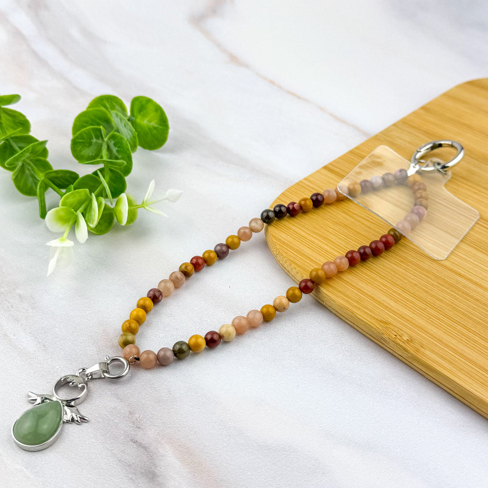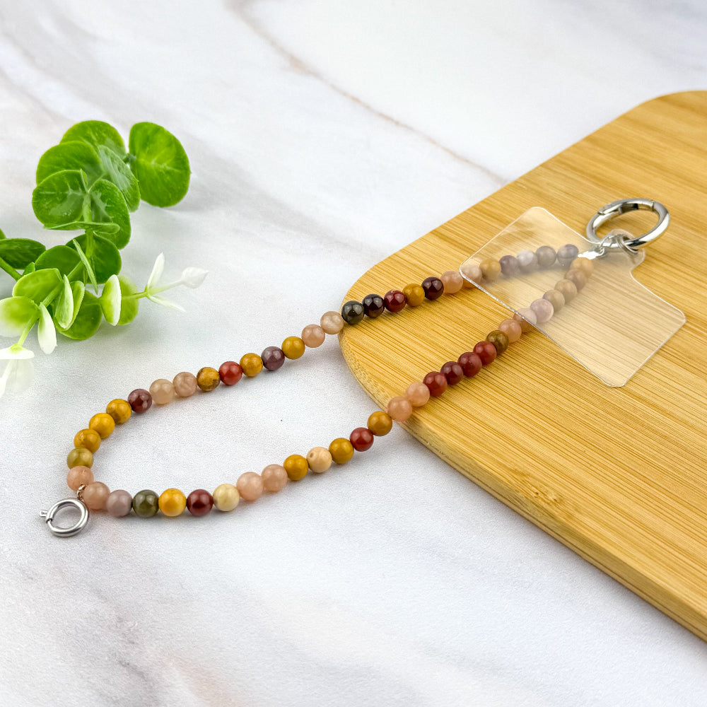 Diffusez joie et vitalité avec cette accroche téléphone en perles naturelles de 6 mm.