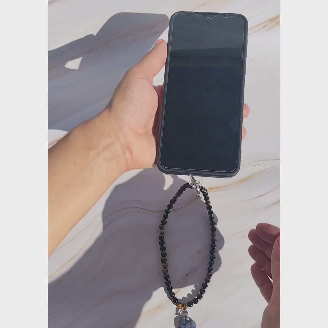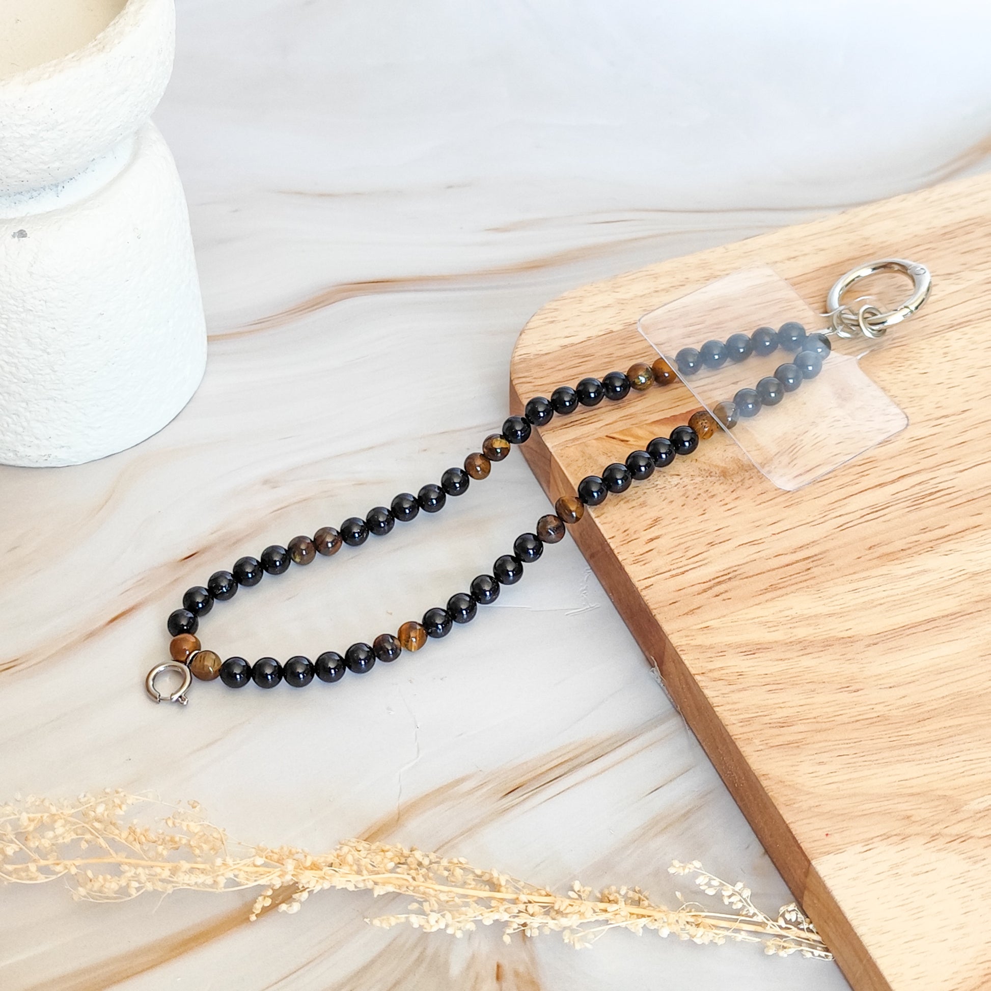 Alliez sécurité et stabilité avec cette accroche téléphone en perles naturelles de 6 mm.