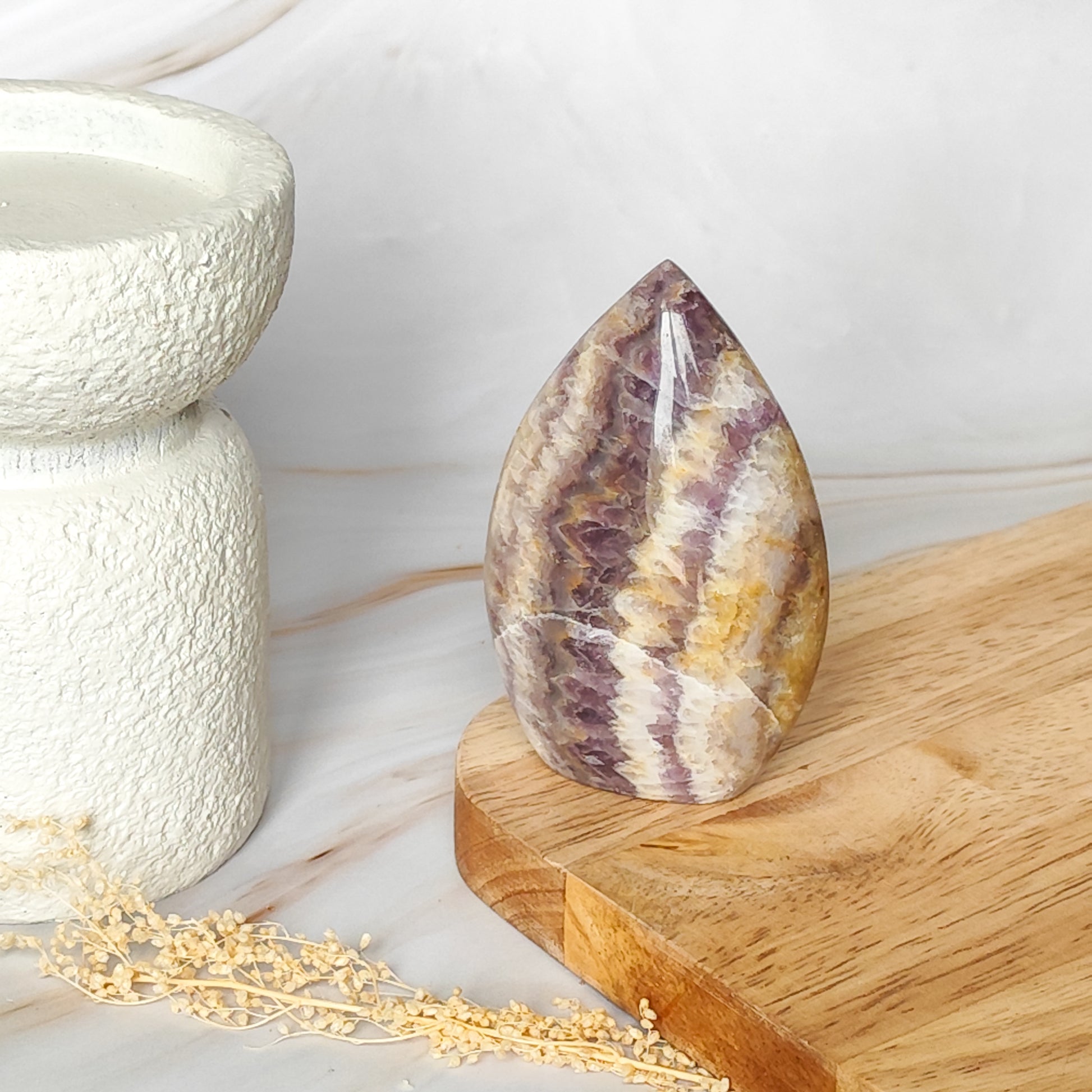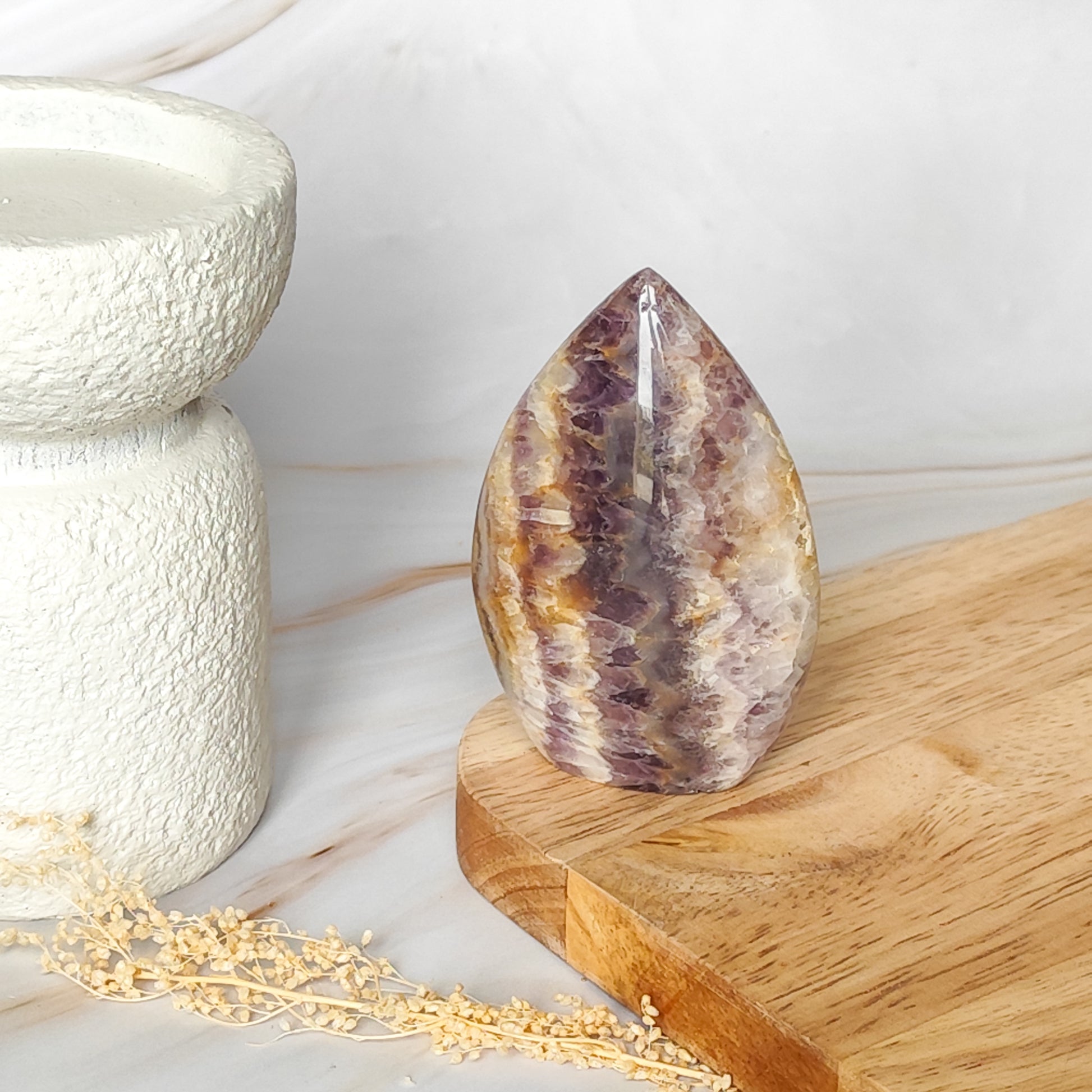 L’améthyste chevron combine la puissance de l’améthyste et du quartz blanc.