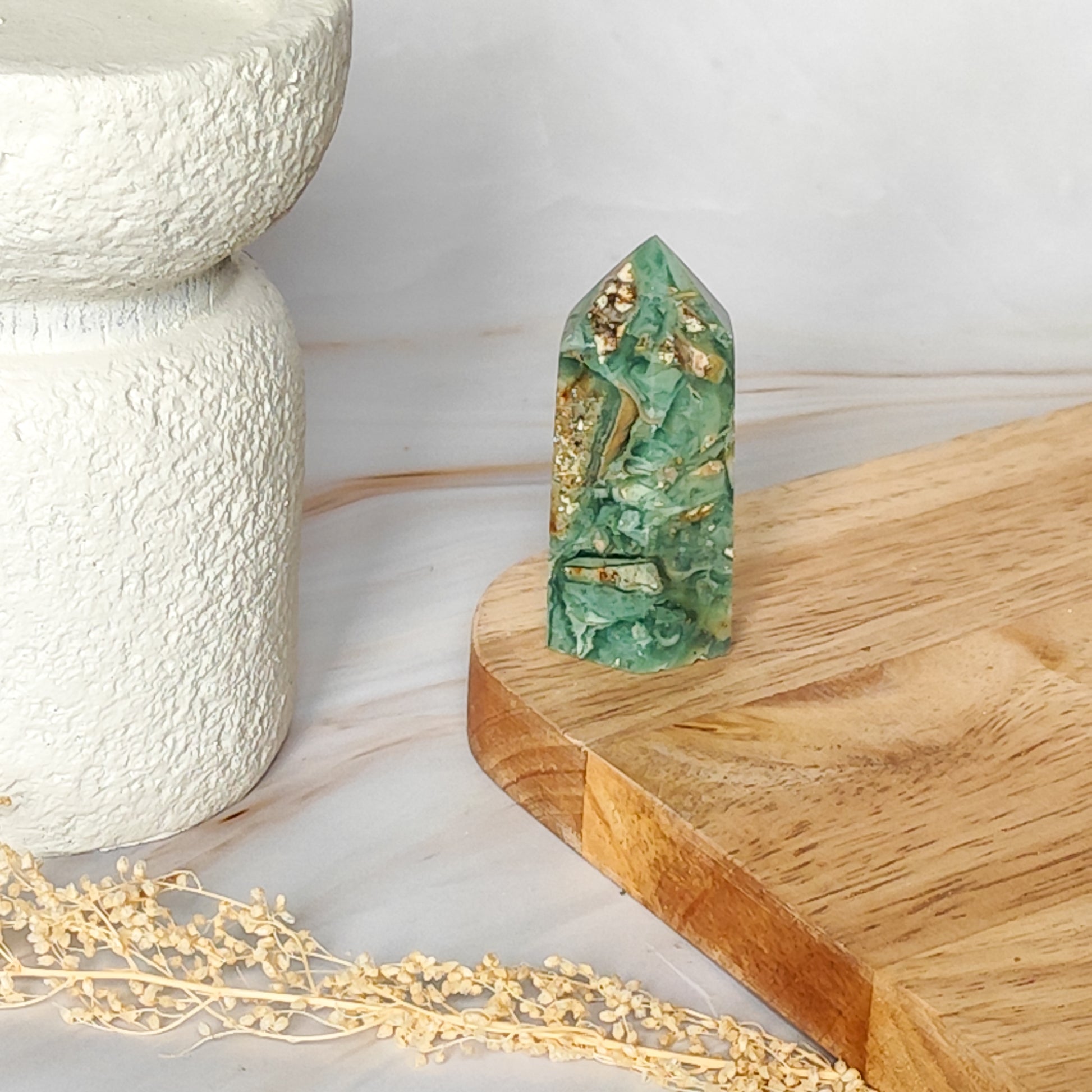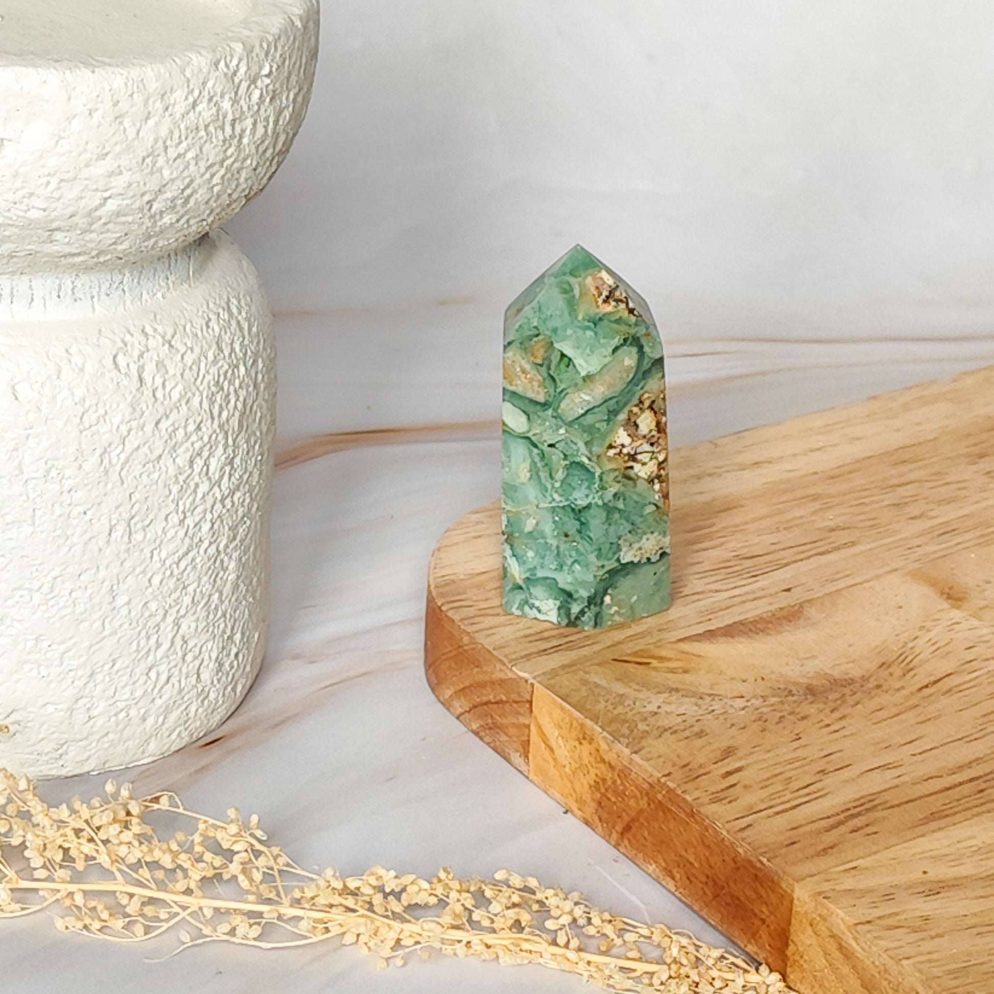 La calcédoine verte apaise les émotions et favorise la sérénité intérieure.