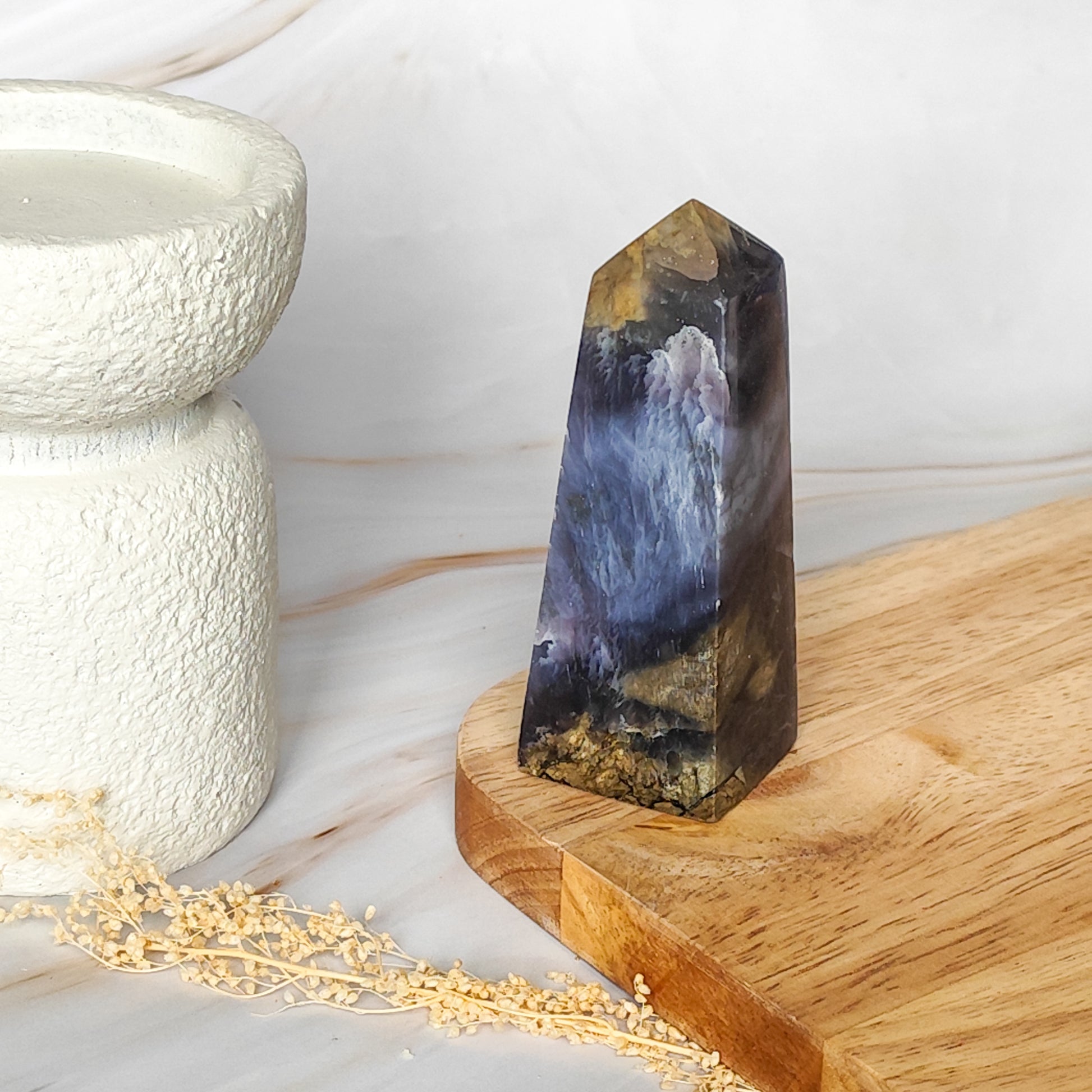 La calcédoine violette apaise les émotions et favorise la sérénité intérieure.